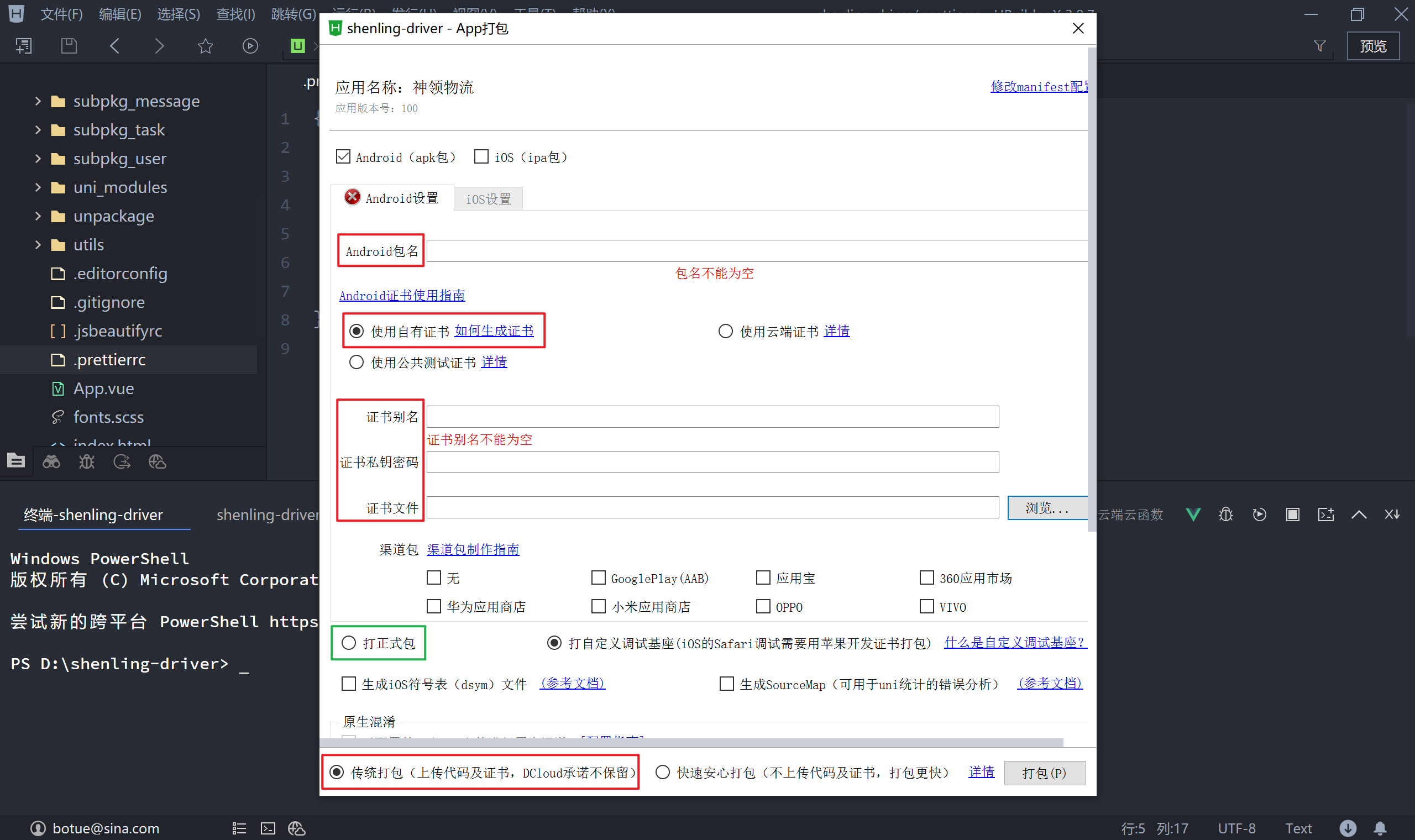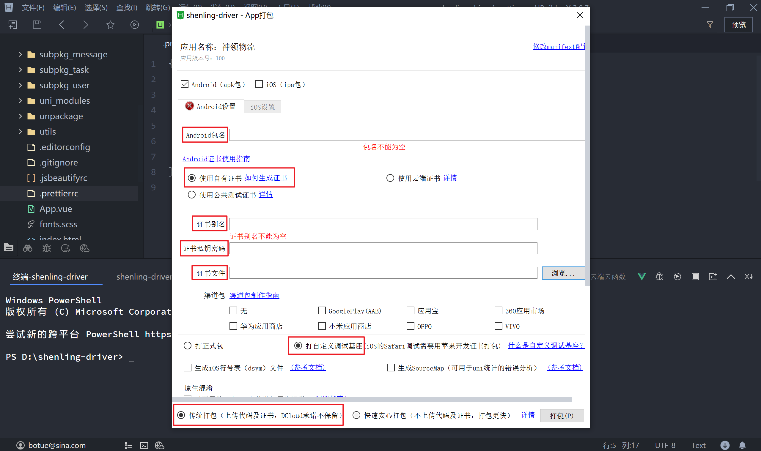 生成自定义基座时及正式发布 App 应用时需要使用自有证书,然后再由 HBuilderX 提供的云打包服务生成安卓 APK 安装程序。