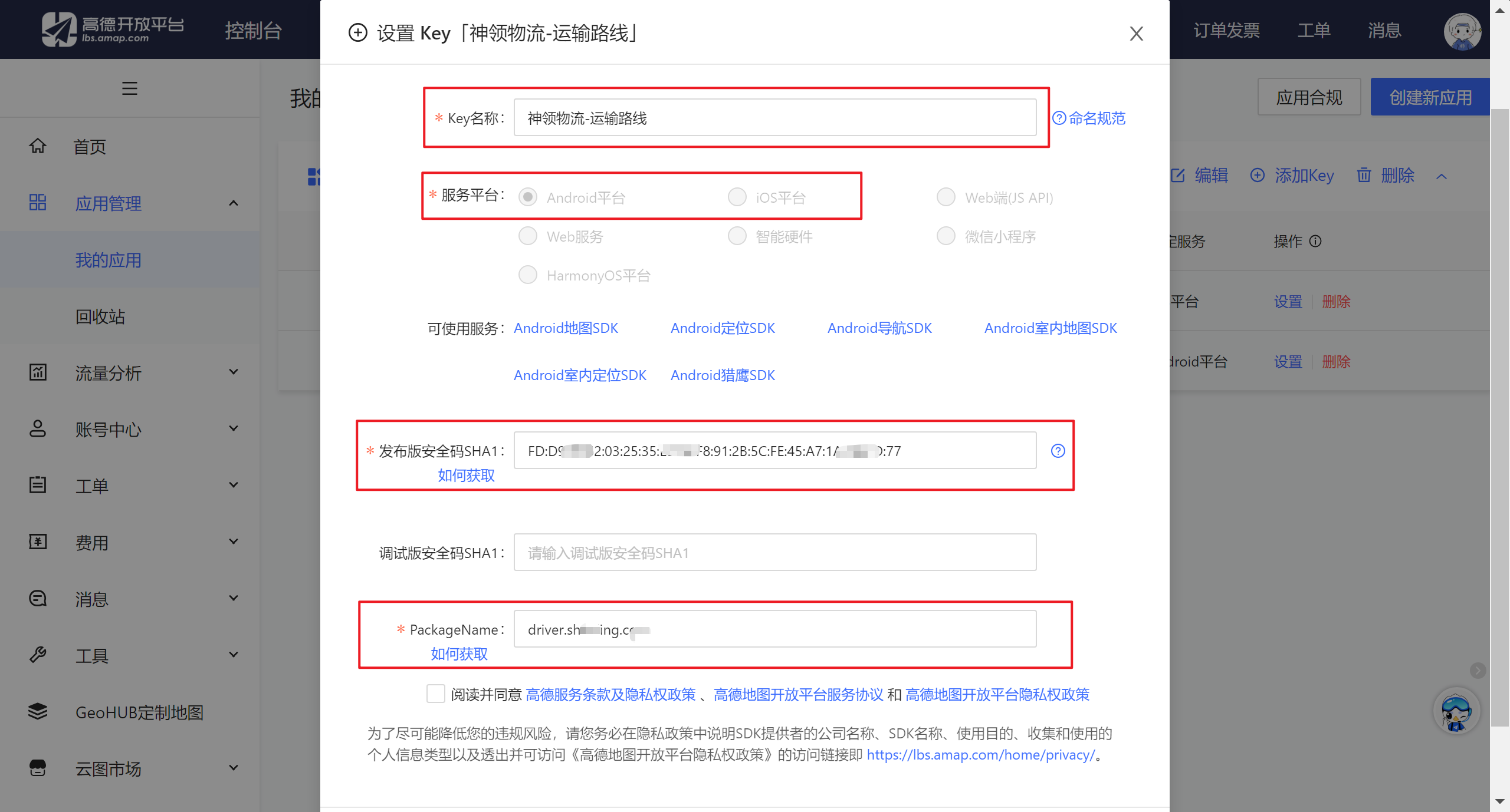 H5 和小程序平台咱们选择的是腾讯地图open in new window服务平台,App 咱们选择高德地图open in new window服务平台,自行注册高德地图开发者账号并创建应用。