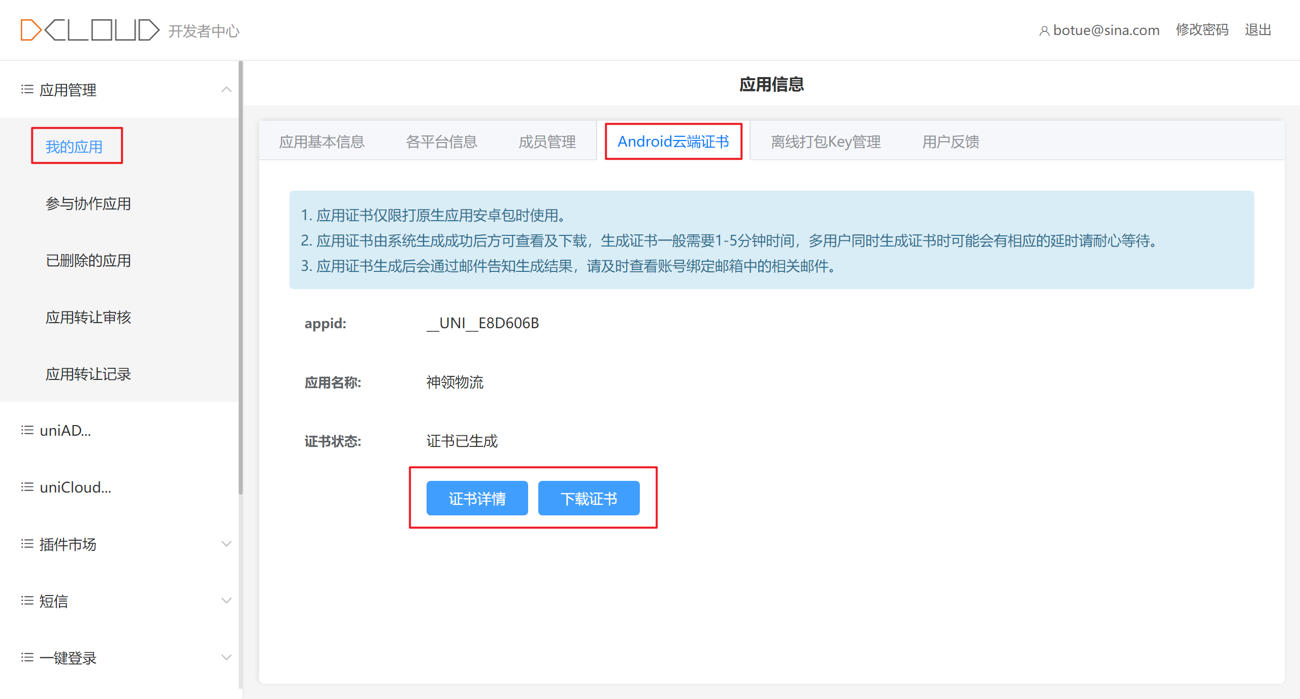 云端证书是由 DCloud 平台提供的生成证书的服务,登录到 DCloud 开者中心open in new window平台