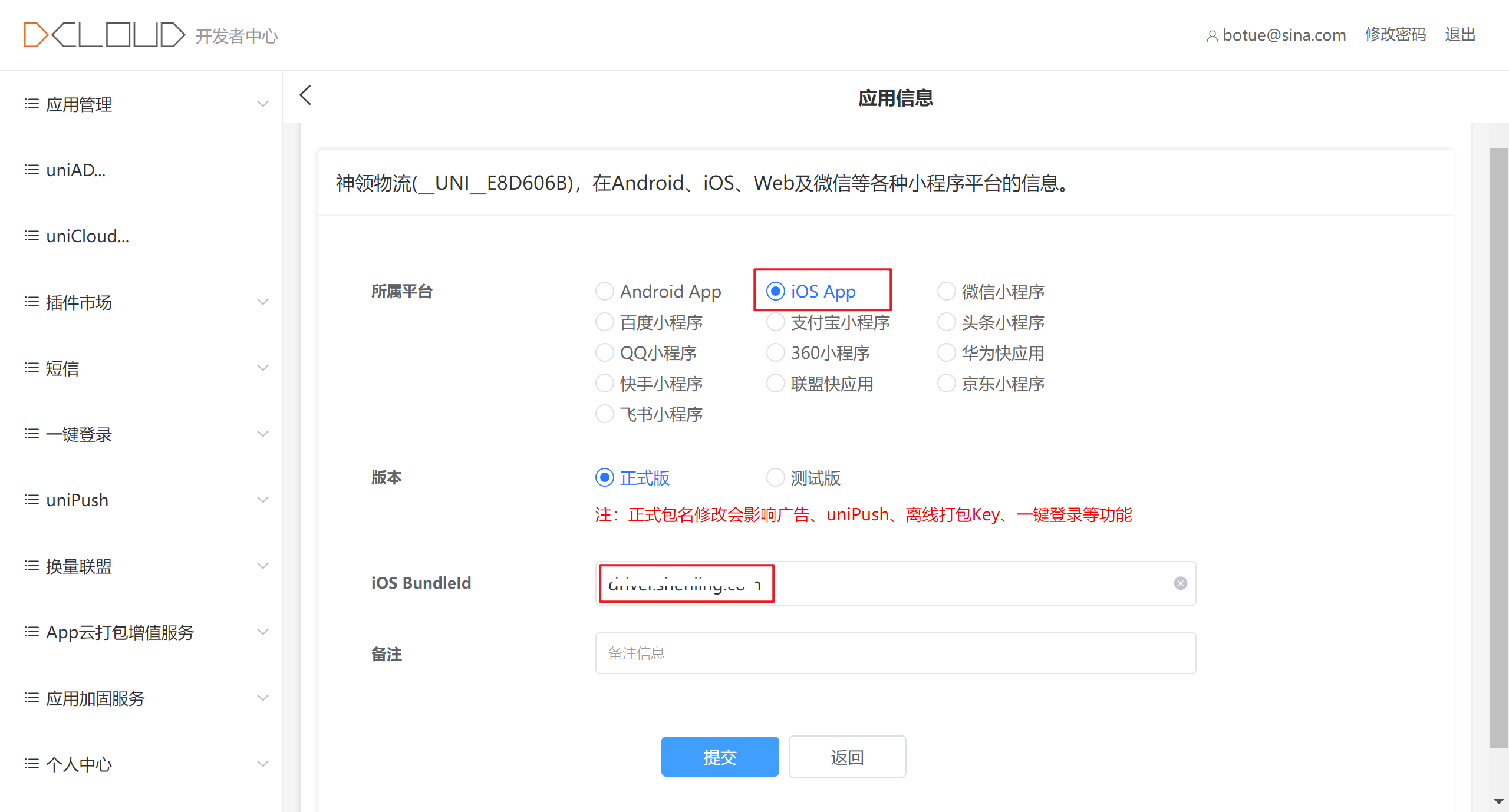 IOS 平台信息也需要完善,只需要填写一个包名就行