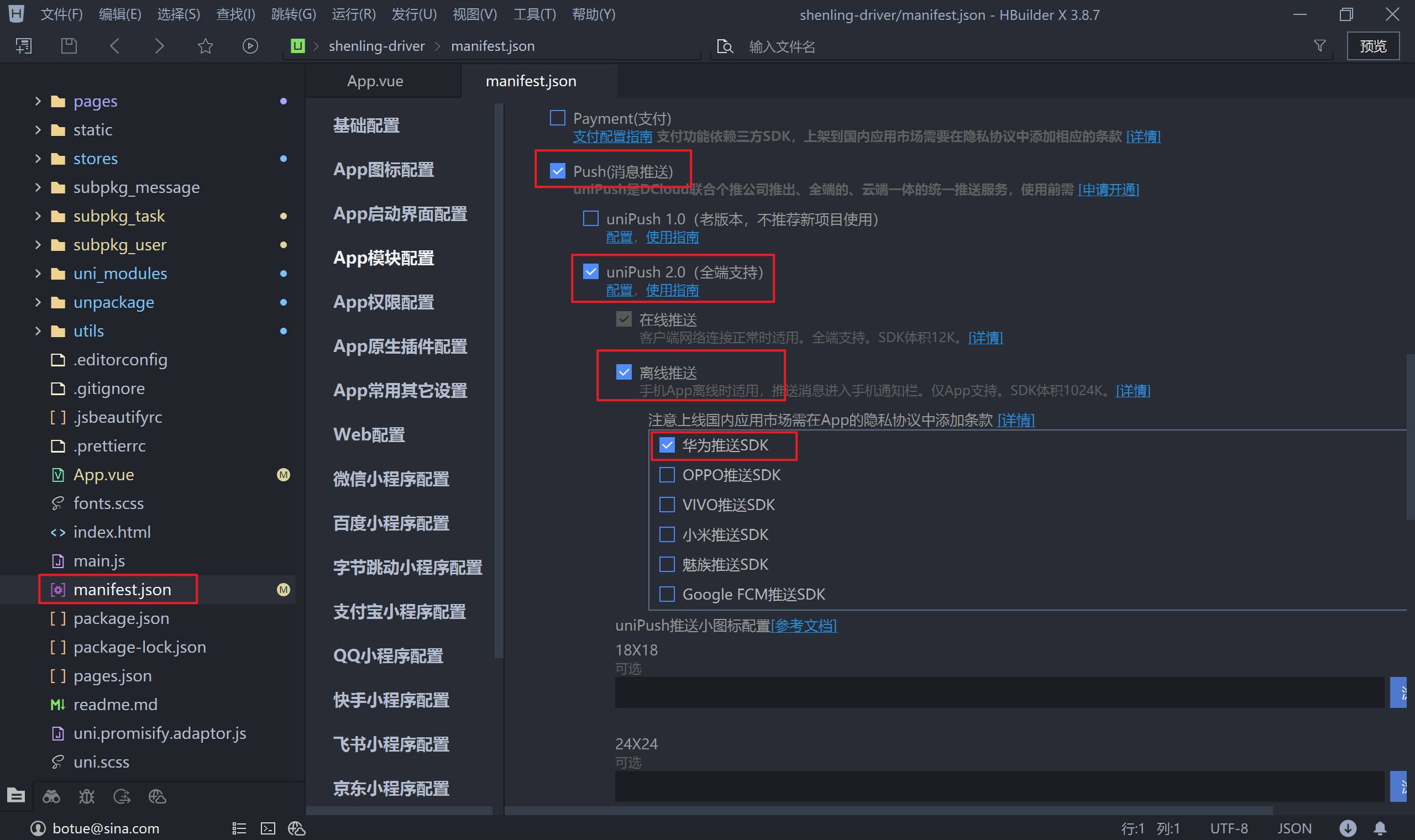 然后找到 uniPush 选择 2.0(支持全端推送)