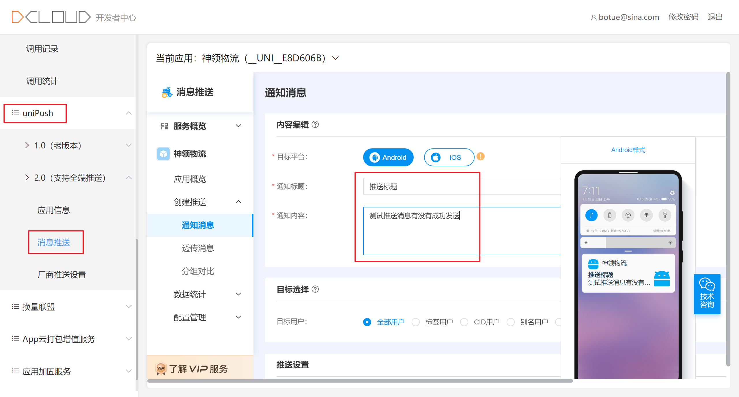 消息推送是服务端管理后台主动向安装了 App 的用户发送消息功能,分为离线推送和在线推送两种。